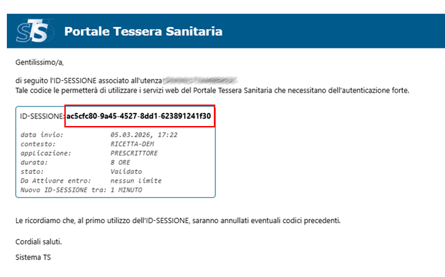 Alla scadenza TServe invierà una nuova richiesta a SistemaTS che provvederà ad inviare una nuova e-mail con il nuovo IDsessione.