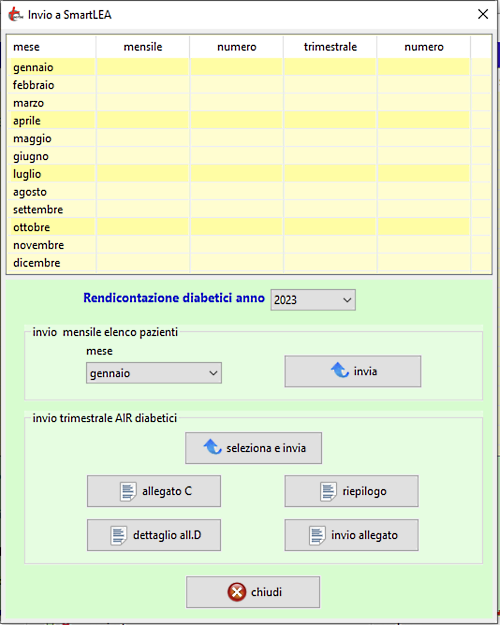 e ci da la possibilità di inviare sia l'elenco mensile dei pazienti arruolati che il report trimestrale.